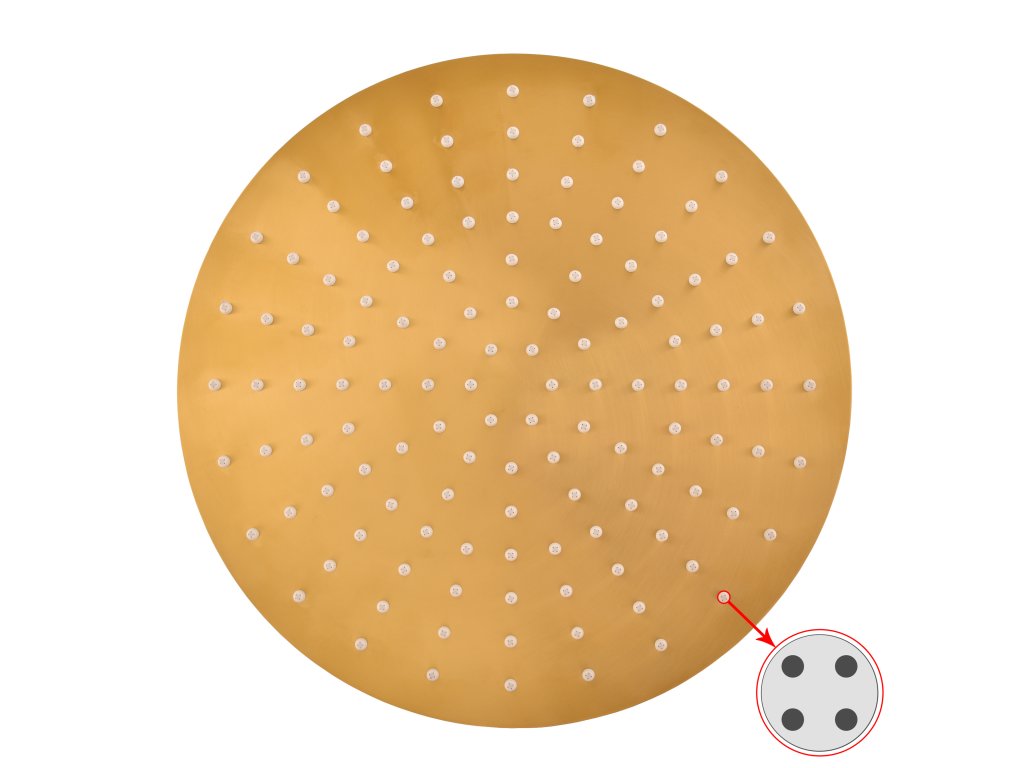 Fejzuhany - KS0001/4ZK Kerek fém fejzuhany ø 30 cm 4 lyukú fúvókákkal, arany - szálcsiszolt