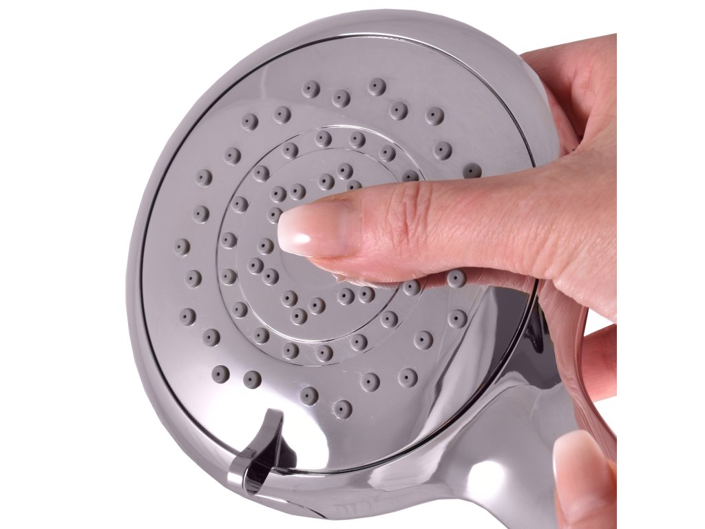 A víztakarékos kézi zuhany EasyClean funkcióval van felszerelve - a kis zuhanyfúvókák egyszerűen tisztíthatók (a keletkezett vízkő egyetlen finom érintéssel letörölhető a fúvókák felületéről).