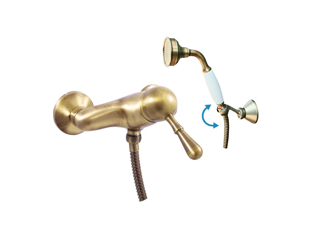 Fali zuhanycsaptelep zuhanyfejjel és forgó tartóval.