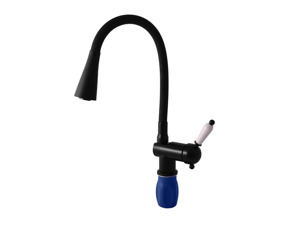 Mosdócsaptelep flexibilis karral és zuhanyzóval - matt fekete.