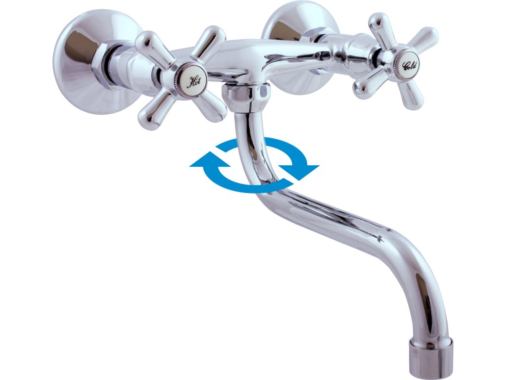 Fali mosogatócsaptelep kerek fogantyúval, 180 mm. Ez a csaptelep 1/2"-os kerámia csaptelepfejjel (MD0093) van felszerelve.