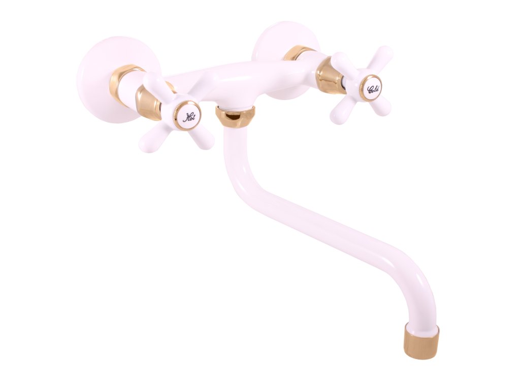 MORAVA RETRO - MK101.5/21BZ Mosdó/mosogató csaptelep, fehér/arany - fényes felületű