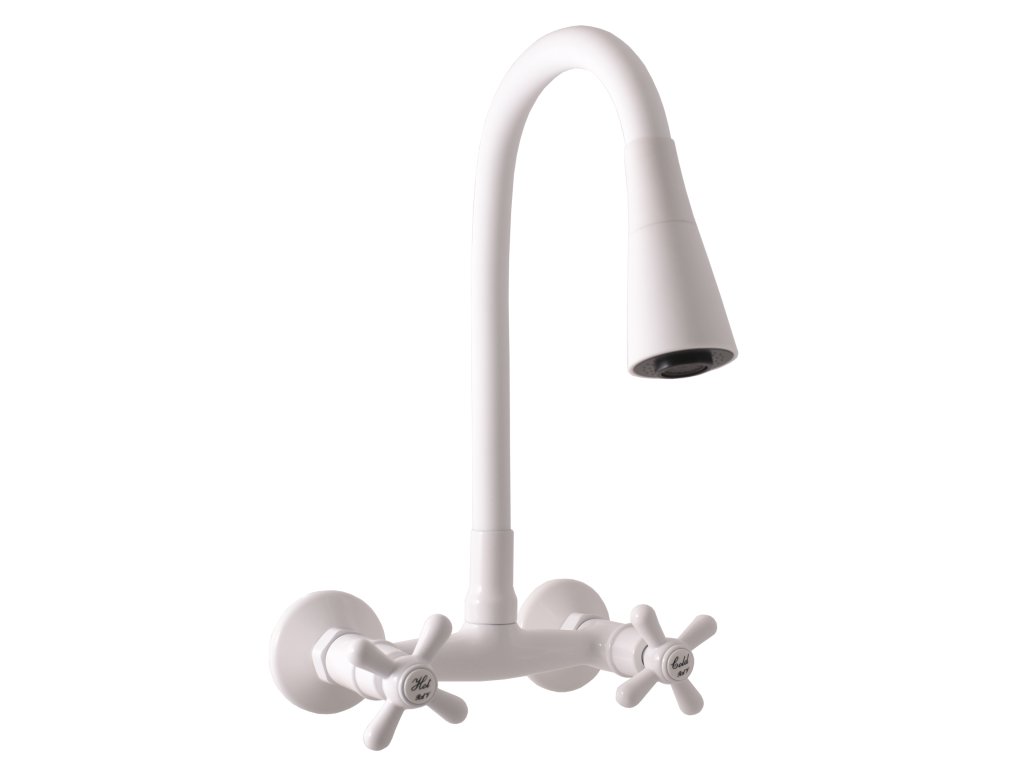 MORAVA RETRO - MK102.5/13B Mosdó/mosogató csaptelep flexibilis karral, fehér - fényes felületű