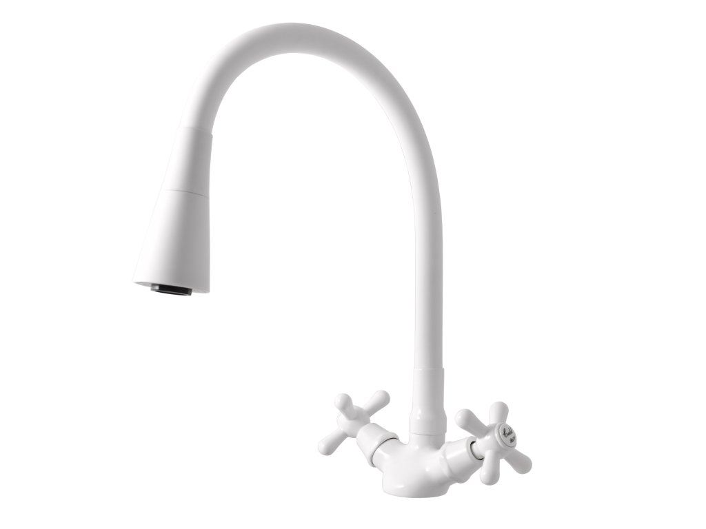 MORAVA RETRO - MK120.0/13B Mosdó/mosogató csaptelep flexibilis karral, lefolyó nélkül, fehér - fényes felületű