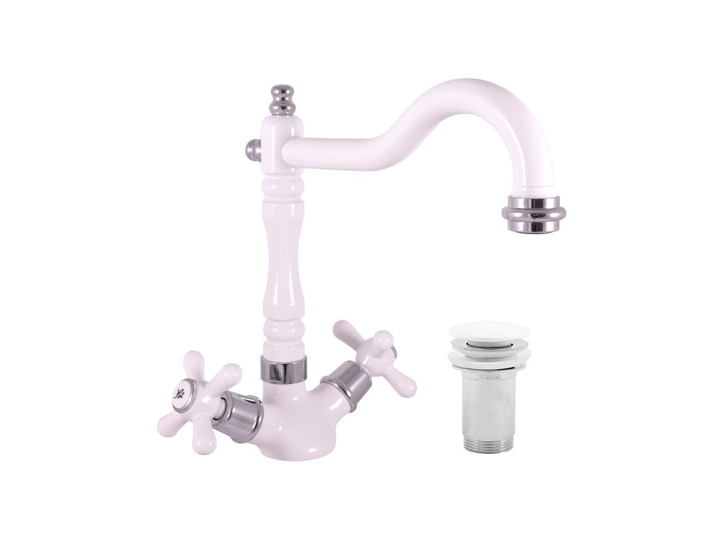 MORAVA RETRO - MK121.0/8BC Mosdócsaptelep lefolyóval, fehér/króm