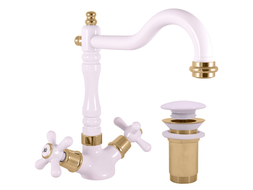 MORAVA RETRO - MK121.0/8BZ Mosdócsaptelep lefolyóval, fehér/arany - fényes felületű