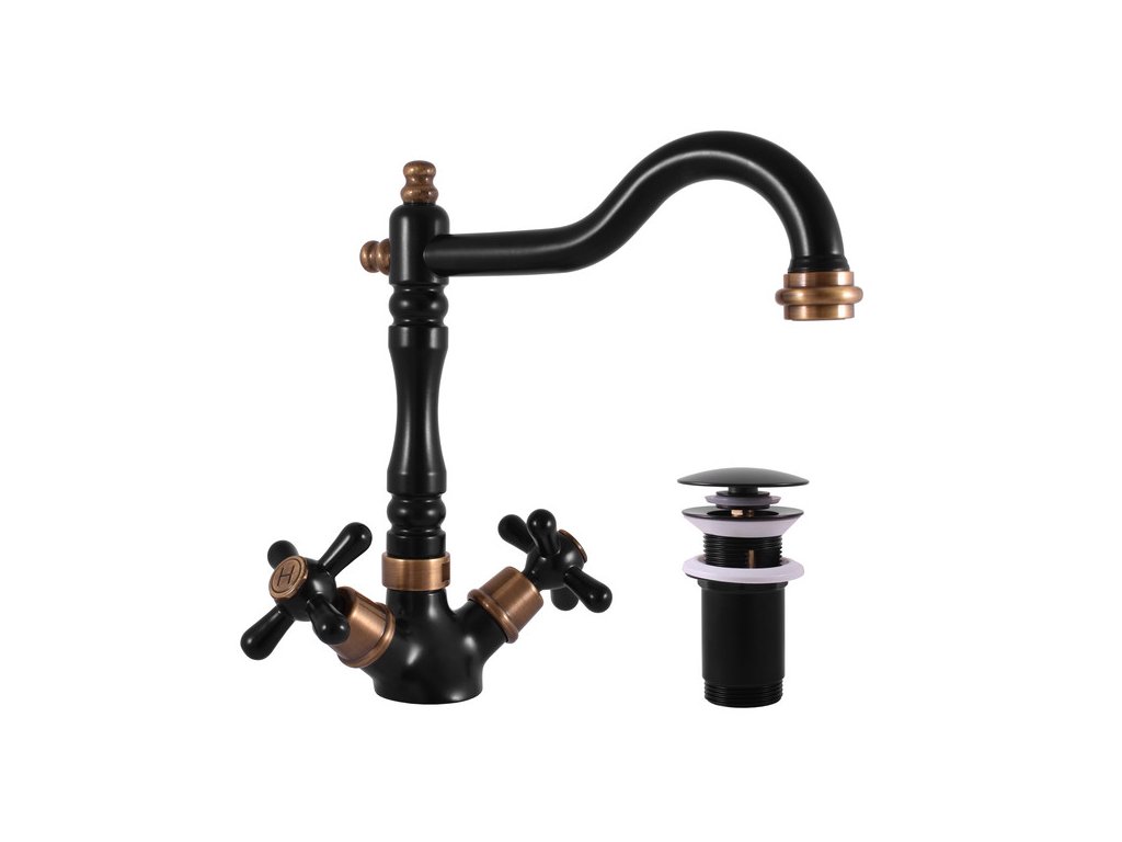 MORAVA RETRO - MK121.0/8CMATSM Mosdócsaptelep lefolyóval, Matt fekete/Bronz