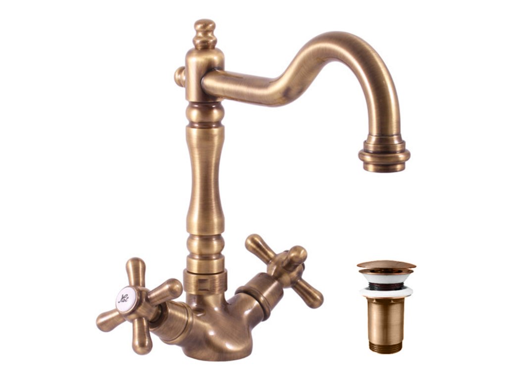 MORAVA RETRO - MK121.0/8SM Mosdó/mosogató csaptelep lefolyóval, szálcsiszolt bronz