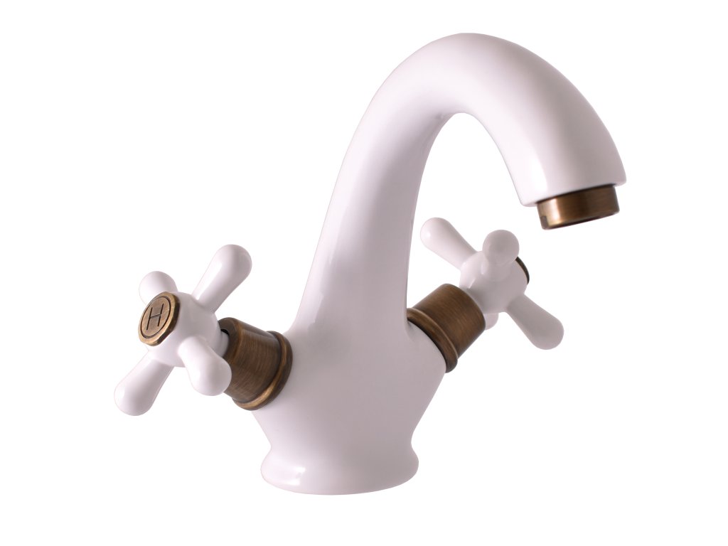 MORAVA RETRO - MK128.0BSM Mosdócsaptelep lefolyó nélkül, Fehér/Bronz