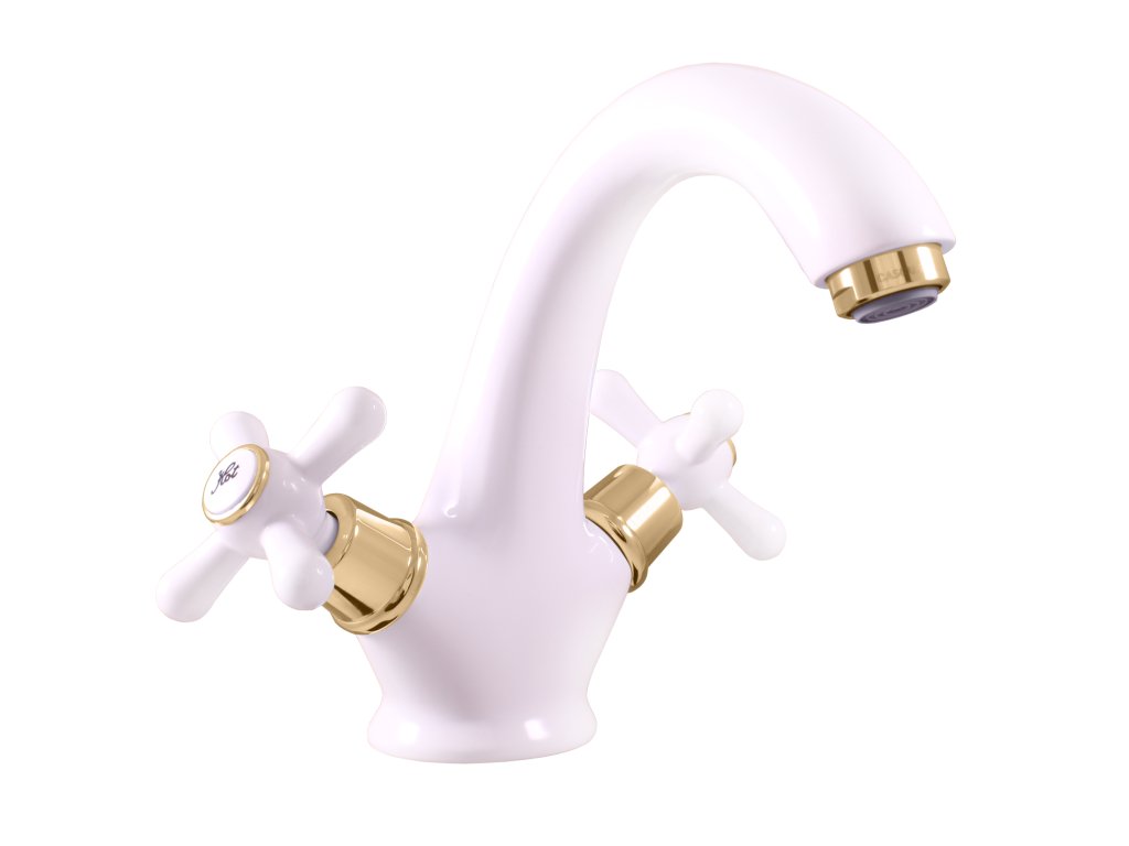 MORAVA RETRO - MK128.0BZ Mosdócsaptelep lefolyó nélkül, fehér/arany - fényes felületű