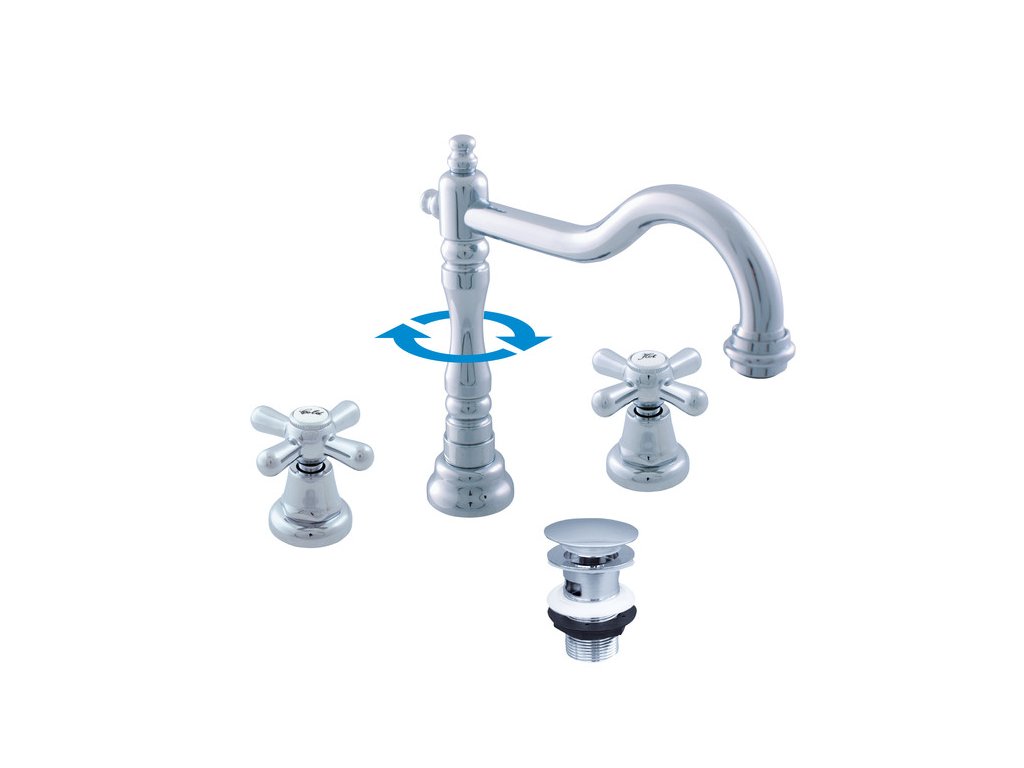 Álló mosdócsaptelep forgókarral és CLICK-CLACK kifolyóval.