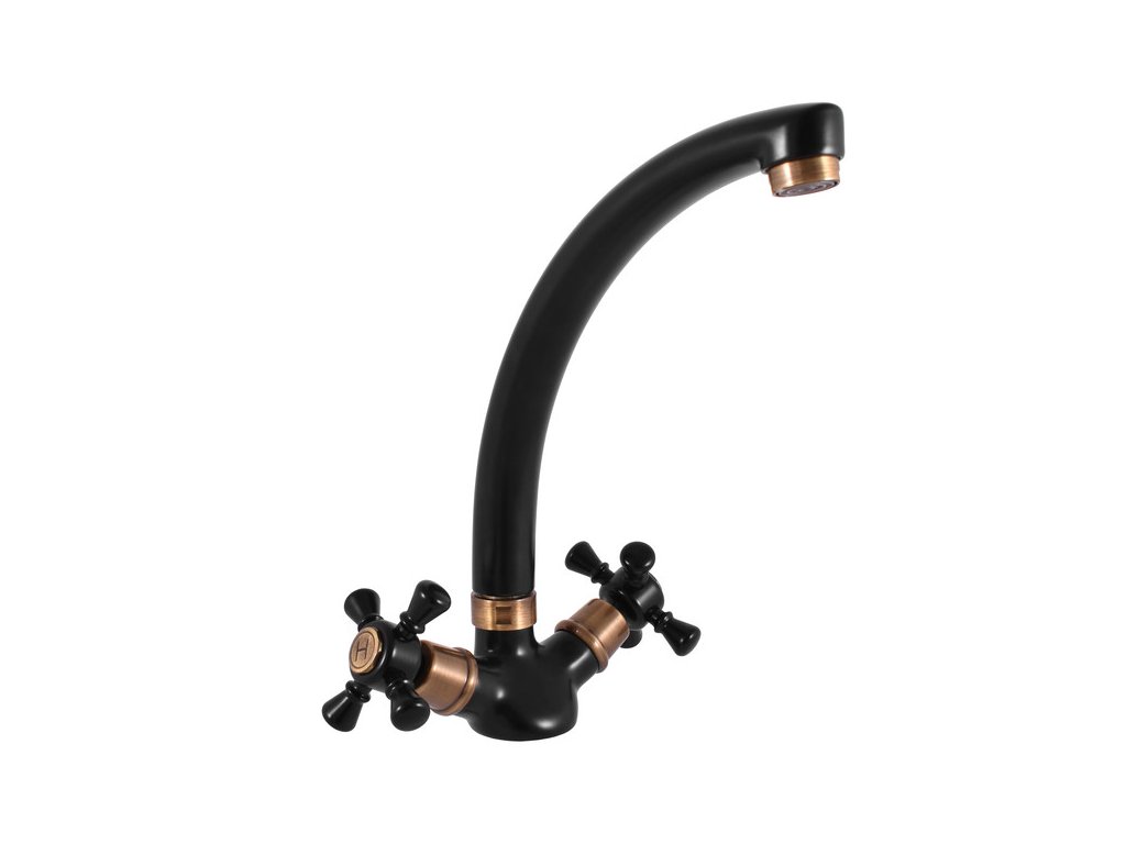MORAVA RETRO - MK320.0/3CMATSM Mosdó/mosogató csaptelep lefolyó nélkül, Matt fekete/Bronz