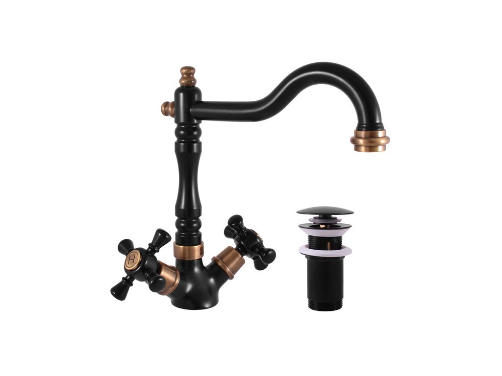 MORAVA RETRO - MK321.0/8CMATSM Mosdócsaptelep lefolyóval, Matt fekete/Bronz