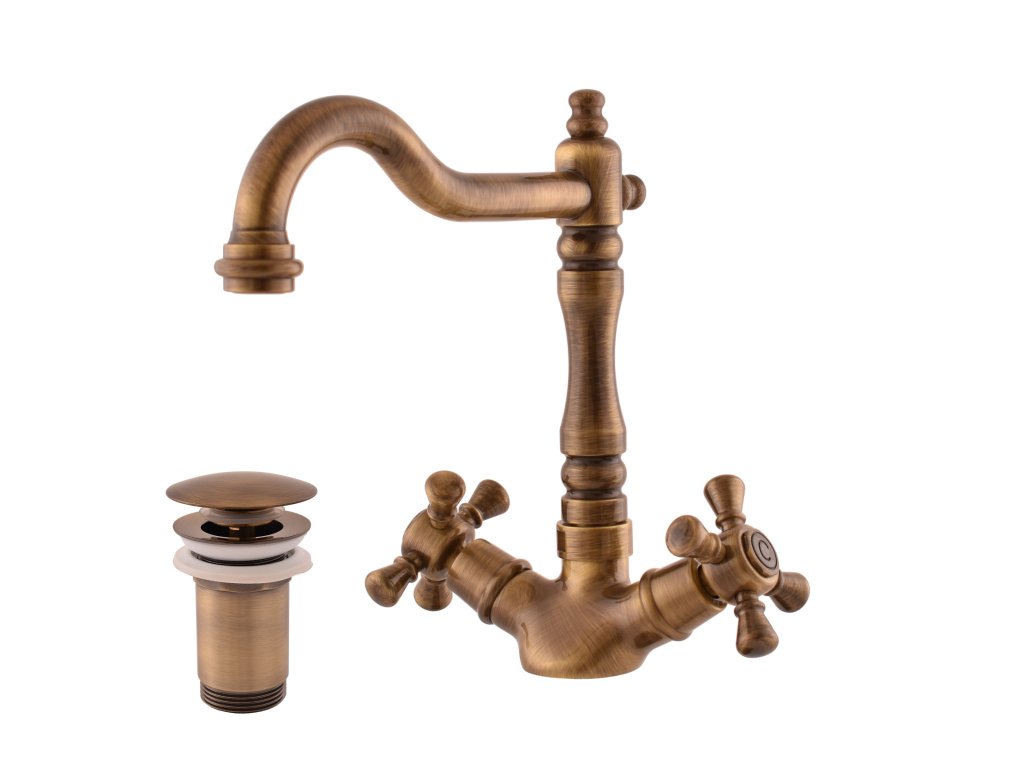 MORAVA RETRO - MK321.0/8SM Mosdócsaptelep lefolyóval, szálcsiszolt bronz