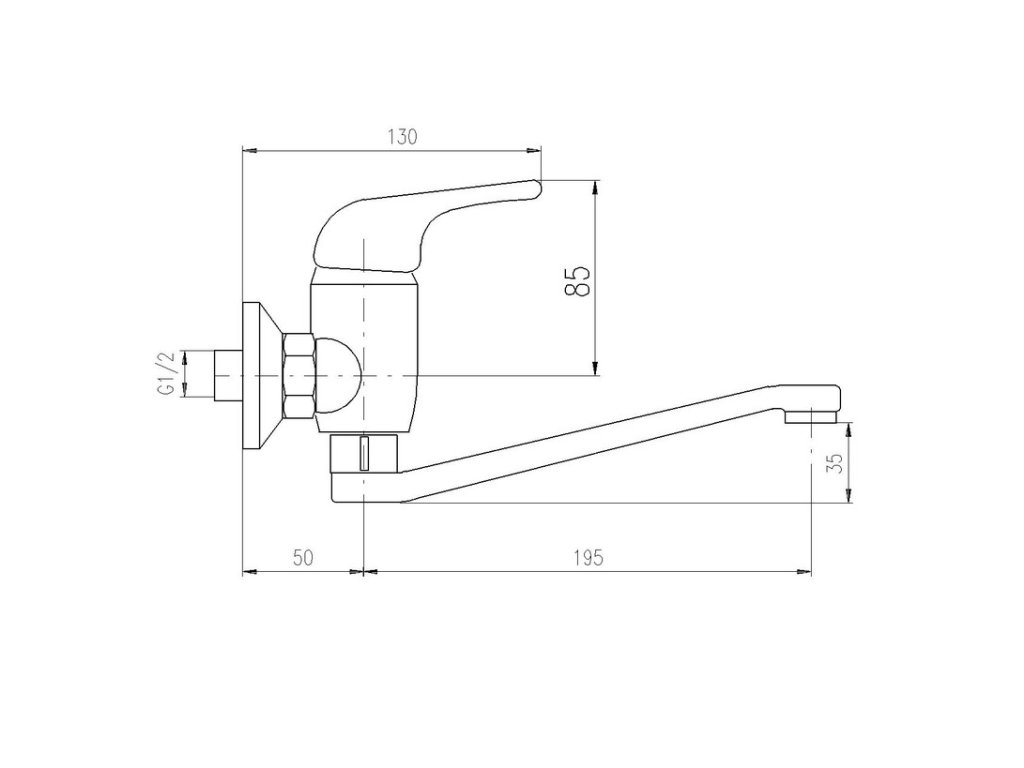 Fali mosogatócsaptelep lapos "S" alakú karral, 195 mm.