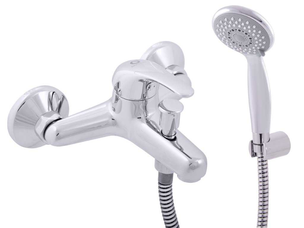 Fali kádcsaptelep zuhanyzóval és fix tartóval.
