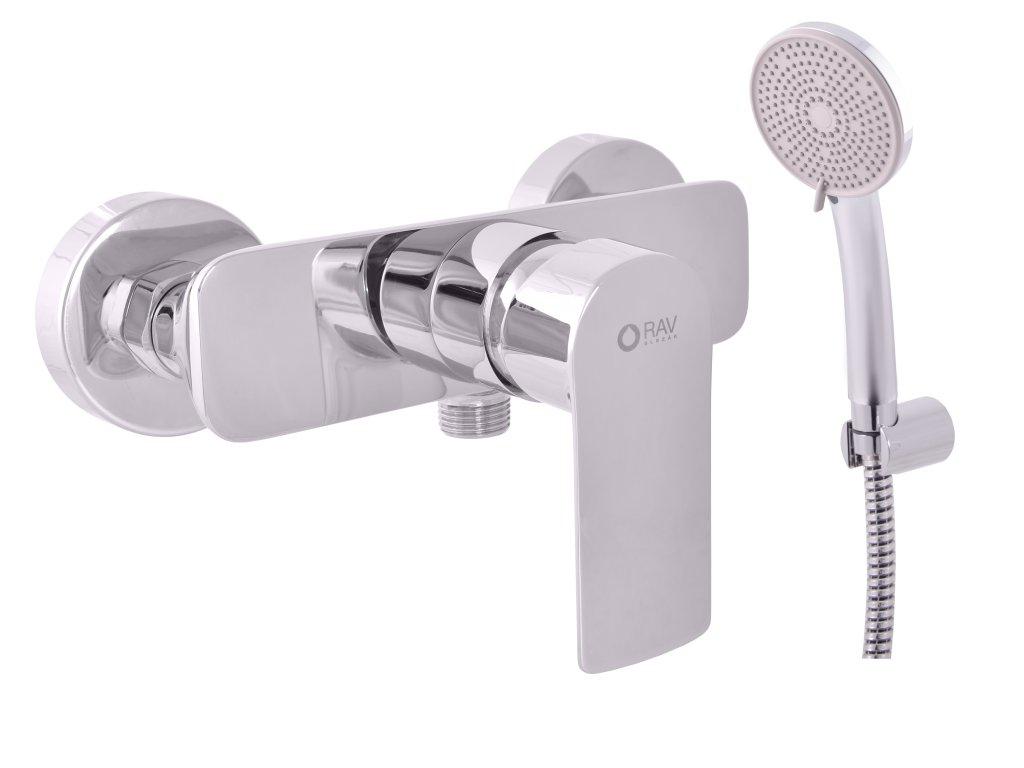 Fali zuhanycsaptelep zuhanyfejjel és fix tartóval.