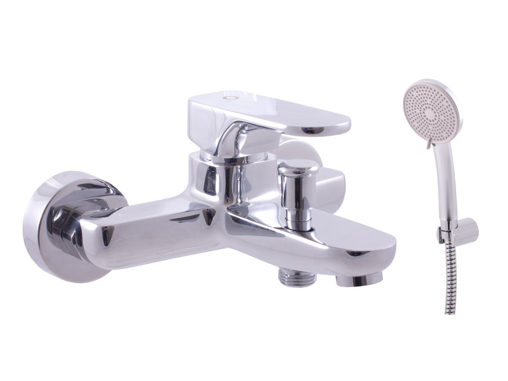 Fali kádcsaptelep zuhanyzóval és fix konzollal.