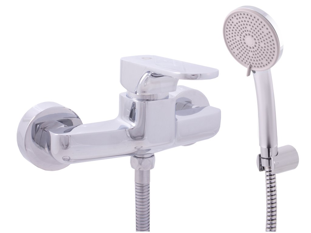 Fali zuhanycsaptelep zuhanyfejjel és fix tartóval.