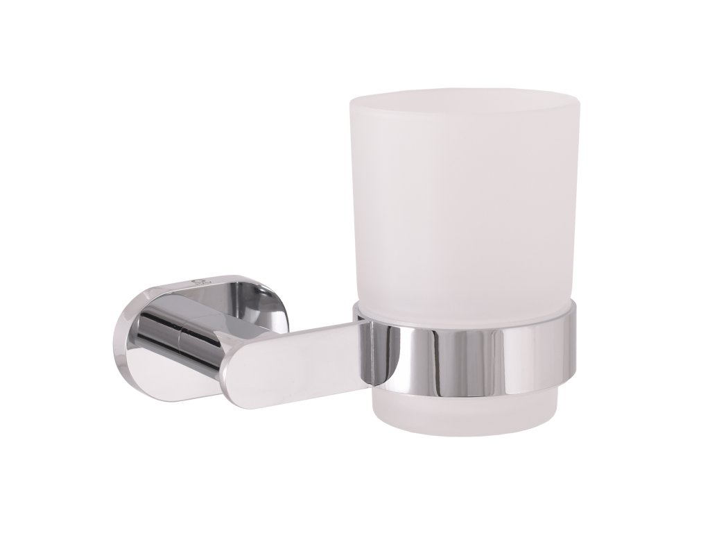 Az elegáns, fehér króm tartó homokfúvott üveggel remekül illik minden mosdókagylóhoz. Az üveg minden nap kellemesebbé teszi a személyes higiéniát.