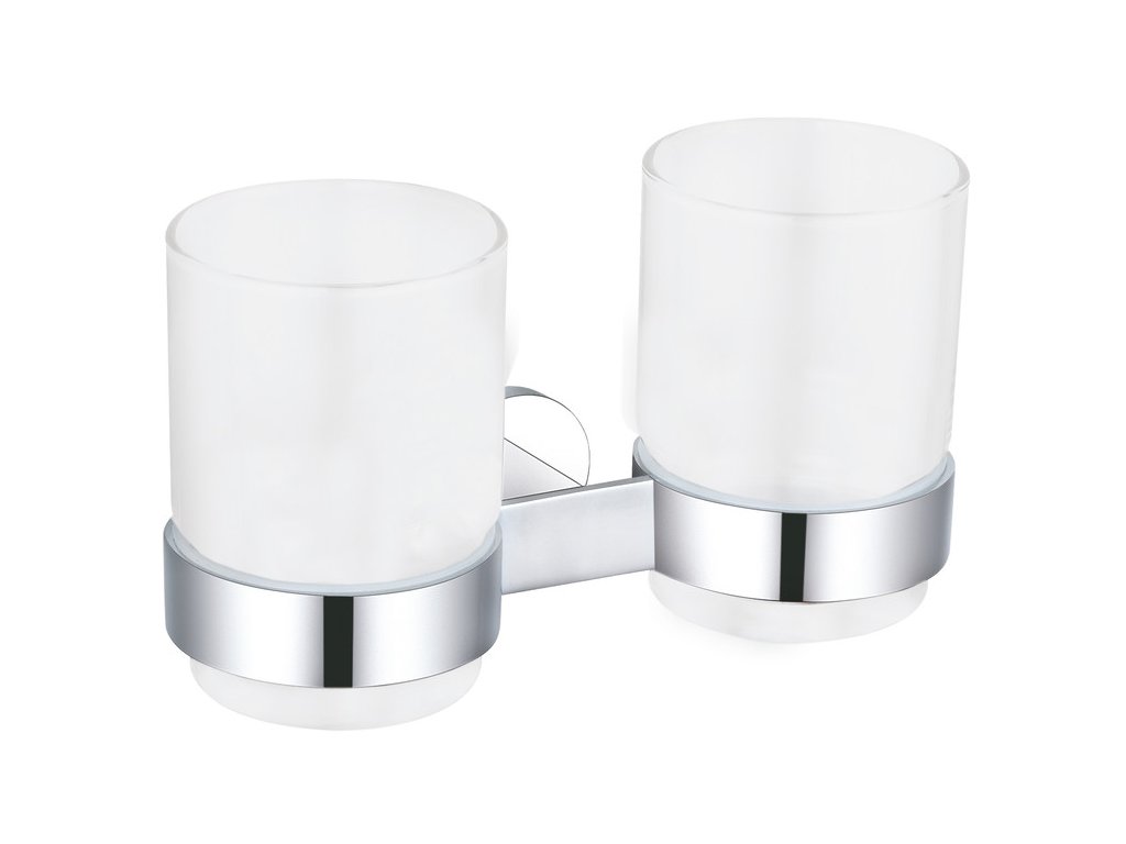 YUKON - YUA0202CB Fürdőszobai kiegészítő Dupla üveg fogkefetartó, fehér/króm